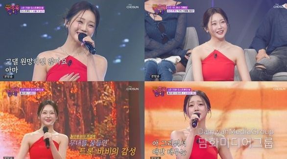 이날 '미스트롯2' 선(善) 출신 홍지윤은 레드 드레스를 입고 등장해 압도적인 비주얼과 함께 강렬한 존재감을 발산했다. 이어 '미스트롯2' 멤버들과 호흡을 맞춘 '서울 가 살자' 무대로 감탄을 자아내며 품격 있는 무대 매너를 보여줬다.