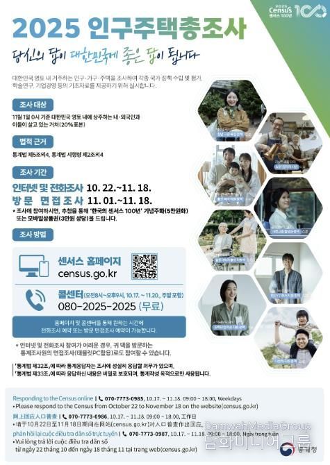 시민행정신문 강갑수 기자 | 충북 괴산군은 오는 22일부터 11월 18일까지 ‘2025 인구주택총조사’를 실시한다고 밝혔다.