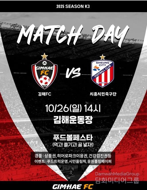 시민행정신문 장규호 기자 | 2025년 K3리그 현재 1위를 달리고 있는 김해FC2008 (이하'김해FC')가 오는 26일 김해운동장에서 시흥시민축구단과의 홈 경기를 펼친다.