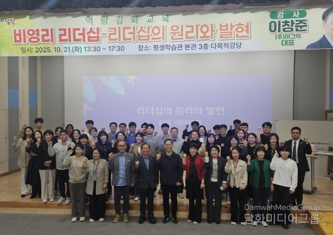 시민행정신문 강갑수 기자 | 남원시는 10월 21일 오후 1시 30분부터 평생학습관 3층 다목적 강당에서 민간사회복지 종사자 70여명이 참석한 가운데 '비영리 리더십 – 리더십의 원리와 발현'을 주제로 2025년 민간사회복지사 역량강화교육 5회차 마지막 교육을 성황리에 마쳤다.