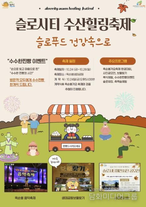 수산면 관계자는 “수산면은 느림의 미학이 살아 숨 쉬는 대표적인 슬로시티로, 이번 축제를 통해 지역의 맛과 멋을 널리 알리며 자연과 사람이 함께 힐링하는 지속가능한 축제로 발전시켜 나가겠다”고 전했다.