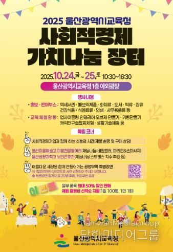 시민행정신문 기자 | 울산광역시교육청은 24일과 25일 시교육청 야외광장 일원에서 ‘사회적경제 가치 나눔 장터’를 연다.