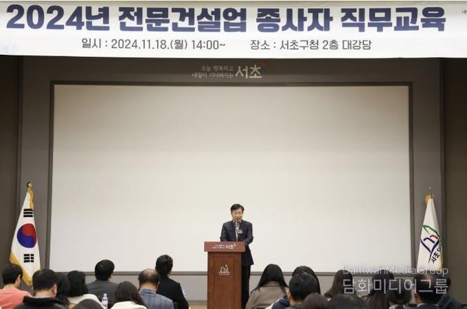 시민행정신문 강갑수 기자 | 서울 서초구가 23일 오후 3시 서초구청 2층 대강당에서 지역 내 178개 전문건설업체 대표자와 업무 관련자를 대상으로 ‘2025년 전문건설업 종사자 직무교육’을 실시한다고 밝혔다.