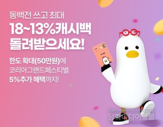 11~12월의 캐시백 요율은 9~10월과 같이 최대 13퍼센트(%)를 유지하되, ‘코리아 그랜드 페스티벌’ 기간(10.29.~11.9.)에만 한시적으로 ▲최대 18퍼센트(%) 캐시백 요율을 적용하고 ▲50만 원의 별도 한도를 추가 적용하는 것이다.