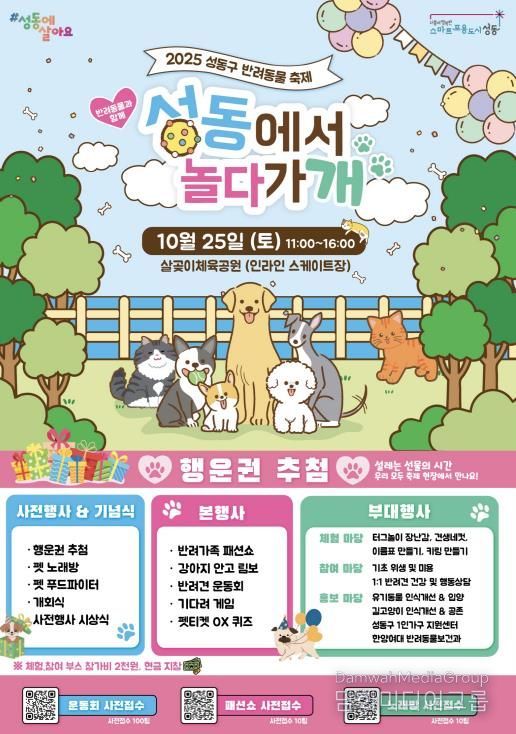 시민행정신문 이존영 기자 | 서울 성동구는 오는 25일 살곶이체육공원 인라인스케이트장에서2025 성동구 반려동물 축제 ‘성동에서 놀다가개’를 개최한다.