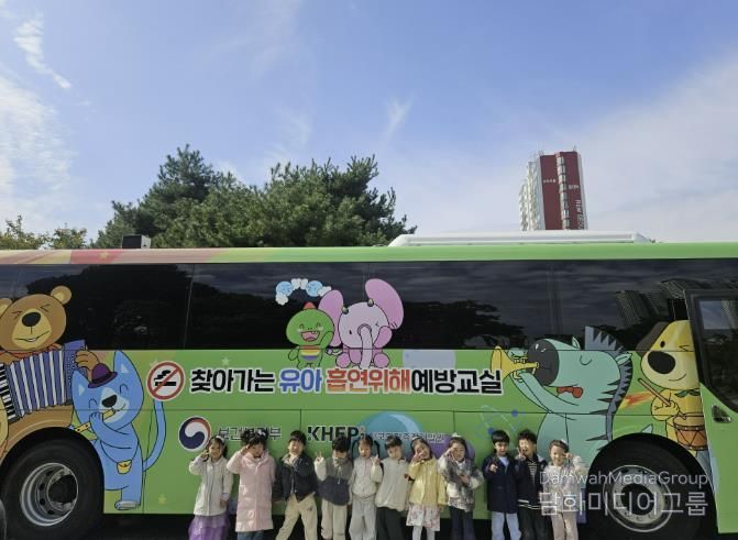 교육은 대형 이동버스인 ‘노담버스’를 활용해 △구연동화‘노담밴드 노스모킹별을 지켜줘’ △놀이활동‘친구들 건강한 마을을 지켜줘’ △미션게임‘담배몬스터를 잡아라’△그림활동‘알록달록 건강한 생활습관 완성’ 등으로 구성됐다.