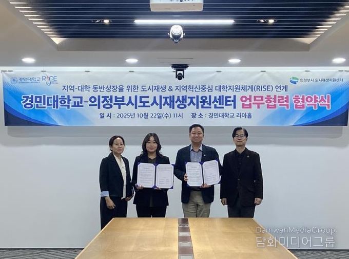 시민행정신문 강갑수 기자 | 의정부시 도시재생지원센터는 10월 22일 경민대학교(RISE사업단‧호텔조리학과)와 ‘의정부동 구도심 상권 재생사업’의 성공적 추진을 위한 업무협약을 체결했다.