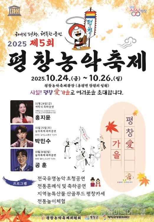 시민행정신문 강갑수 기자 | 평창군은 10월 24일부터 26일까지 3일간, 평창군 장평리 평창 농악축제장 일원에서 '흥겹게 울려 퍼지는 우리 소리! 신명 나게 즐기는 평창의 가을'을 주제로 '2025 평창농악축제'를 개최한다.