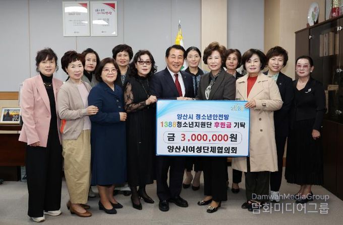 시민행정신문 강갑수 기자 | 양산시여성단체협의회는 23일 양산시를 방문해 어려운 환경에도 굳건하게 성장해 가는 청소년을 지원하기 위해 후원금 300만원을 기탁했다.