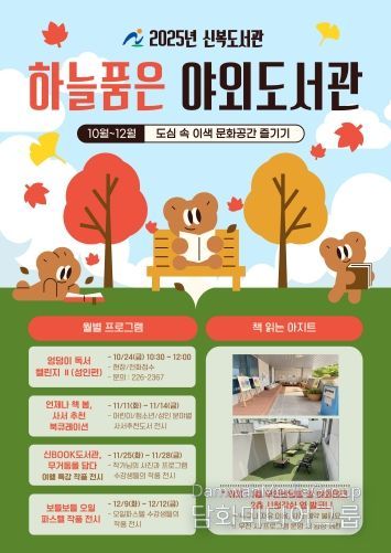 시민행정신문 강갑수 기자 | 울산 남구 신복도서관에서는 도서관 내 유휴공간인 1층 야외공간과 2층 발코니 공간을 새롭게 활용해 지역 주민과 도서관 이용자(프로그램 수강생)들이 참여할 수 있는 다양한 프로그램 운영과 작품 전시, 독서․소통 등을 위한 열린 공간으로 운영한다고 밝혔다.
