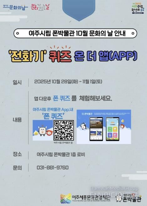 시민행정신문 강갑수 기자 | 여주세종문화관광재단은 10월 ‘문화의 날’을 맞아 여주시립 폰박물관에서 모바일 앱을 활용한 체험형 퀴즈 프로그램 '전화기 퀴즈 온 더 앱'을 운영한다고 밝혔다.