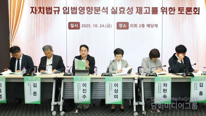 이후 경복대학교 복지행정학과 이상미 교수를 좌장으로 한 자치법규 입법영향분석 제도의 실효성을 높이기 위한 종합토론이 진행됐다.