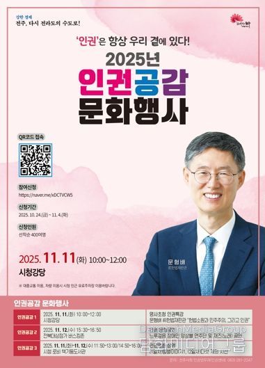 최현창 전주시 기획조정실장은 “이번 인권공감 문화행사는 시민들이 인권의 가치를 생활 속에서 자연스럽게 느끼고, 서로를 존중하는 건강한 사회 분위기를 확산하기 위한 뜻깊은 자리가 될 것”이라며 “앞으로도 인권이 존중받는 인권도시 전주 실현을 위해 최선을 다하겠다”고 말했다.