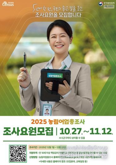 2025 농림어업총조사는 전국의 모든 농림어가를 대상으로 11월 20일부터 12월 22일까지 실시된다. 11월 20일부터 시작되는 인터넷조사에 참여하지 않은 가구를 대상으로 12월 1일부터 조사원이 태블릿PC를 이용해 가구 방문 조사를 진행한다.