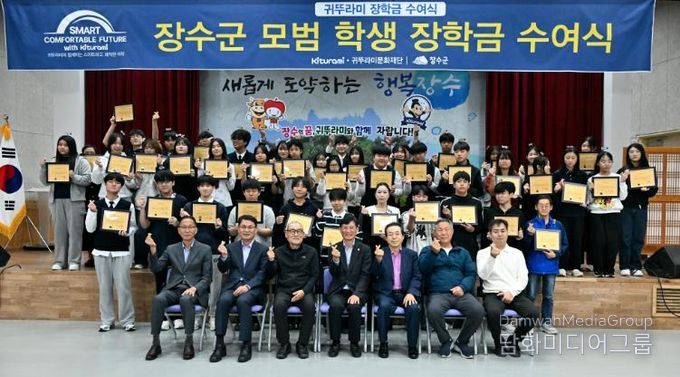 이번 행사는 귀뚜라미그룹과 장수군이 함께 지역의 우수한 학생들을 격려하고 미래 인재로 성장할 수 있도록 지원하기 위해 마련된 자리로, 관내 중·고등학생 50명에게 총 5천만 원의 장학금과 장학증서가 전달됐다.