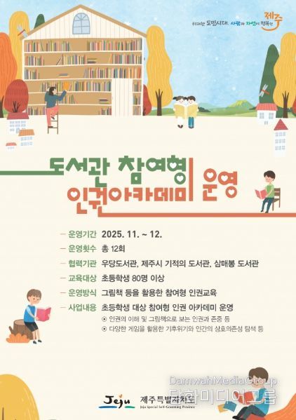 시민행정신문 강갑수 기자 | 제주특별자치도는 어린이들에게 인권의 가치를 쉽고 재미있게 전달하기 위해 11월부터 12월까지 도내 주요 도서관에서 ‘도서관 참여형 인권교육'을 운영한다.