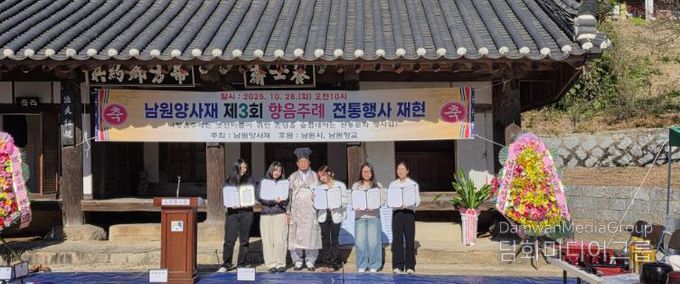 이번 장학금은 남원양사재의 대표행사인 제3회 향음주례 전통 행사 재현회를 기념하여, 학업 여건이 어려운 가운데에서 꿈과 희망을 키워가고 있는 학교 밖 청소년 5명(신○연, 이○연, 이○린, 이○윤, 장○르)을 선정하여 1인당 20만 원씩 수여했다.