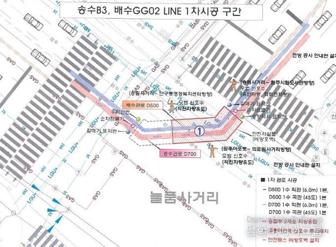 시민행정신문 강갑수 기자 | 원주시상하수도사업소는 태장배수지 설치사업의 일환으로 진행되는 늘품사거리 교차로 구간 송배수관로 설치공사를 야간에 실시한다.