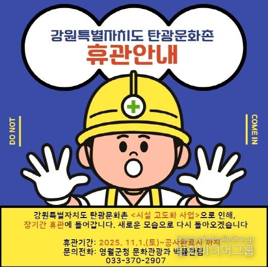 시민행정신문 강갑수 기자 | 강원특별자치도 탄광문화촌이'탄광문화촌 고도화 사업'의 일환으로 추진되는 시설 리모델링 공사에 따라 2025년 11월 1일부터 2026년 12월 31일까지 휴관에 들어간다.