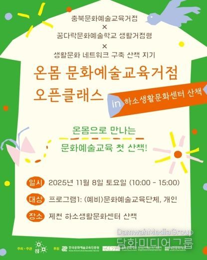 제천문화재단 관계자는 “이번 오픈클래스는 시민이 직접 참여하며 배움과 나눔의 과정을 통해 문화예술교육의 가치를 체험할 수 있는 시간이 될 것”이라며, “앞으로도 제천의 생활문화 주체들이 함께 성장할 수 있도록 다양한 협력 프로그램을 이어가겠다”고 전했다.
