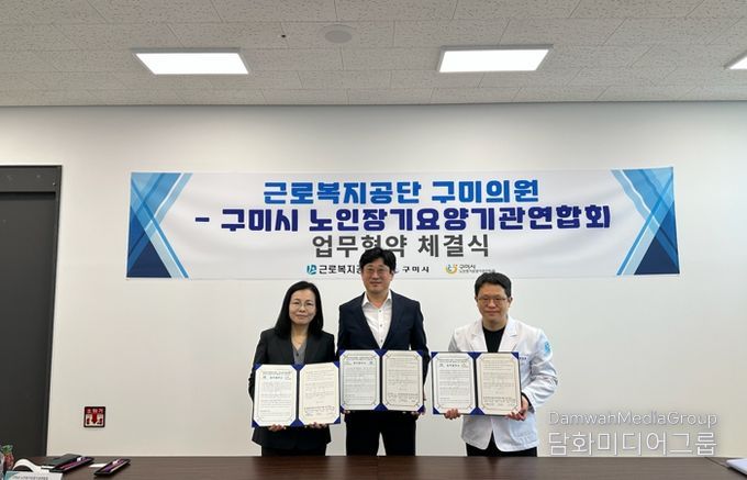시민행정신문 기자 | 근로복지공단 대구병원·구미의원과 구미시노인장기요양기관연합회가 지난 30일 근로복지공단 구미의원 회의실에서 ‘요양시설 근로자 건강증진 및 전문 재활치료 지원’을 위한 업무협약을 체결했다.