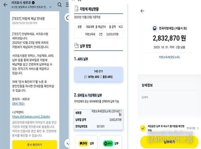 서귀포시 관계자는 “모바일 체납안내문은 시민이 언제 어디서나 간편하게 체납 사실을 확인하고 즉시 납부할 수 있는 서비스”라며, “이번 시행으로 납세 편의가 높아짐에 따라 체납액 징수율 향상도 기대된다. 앞으로도 시민 중심의 편리한 납부 환경을 만들기 위해 다양한 서비스를 추진하겠다”라고 말했다.