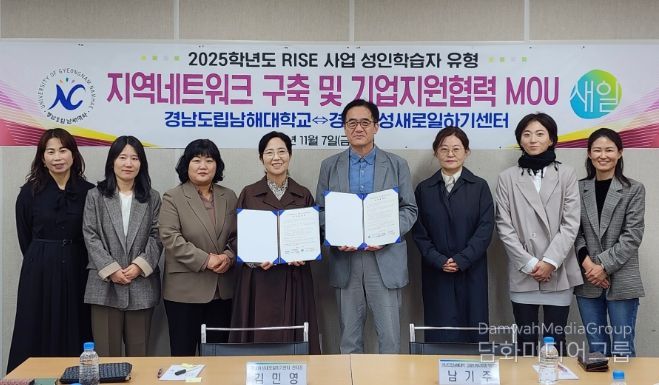 시민행정신문 강갑수 기자 | 경남도립남해대학은 7일 오전 11시 경남여성새로일하기센터에서 양 기관 간 평생교육 공동과제 해결 및 여성 역량 강화를 위한 업무협약(MOU)을 체결했다고 밝혔다.