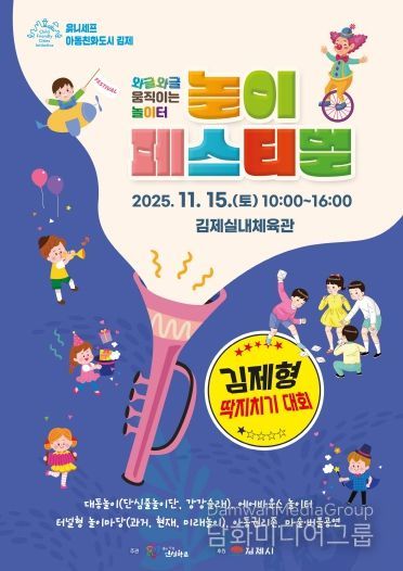 시민행정신문 강갑수 기자 | 김제시는 아이들이 자유롭게 놀며 성장하는 아동친화도시 실현을 위해 오는 15일, 김제실내체육관 및 주차장 일대에서 와글와글 움직이는 놀이터,‘제2회 놀이페스티벌’행사를 개최한다고 밝혔다.