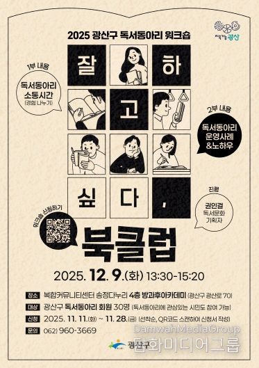 시민행정신문 강갑수 기자 | 광주 광산구가 12월 9일 송정다누리센터에서 독서 문화 교류의 장인 독서동아리 워크숍을 개최한다.