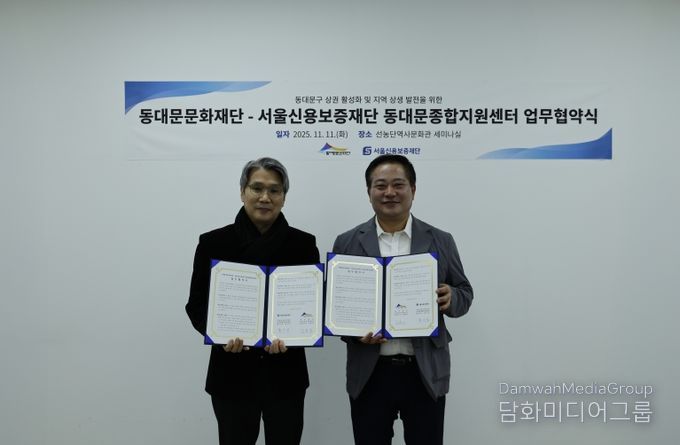 시민행정신문 강갑수 기자 | 동대문문화재단(대표이사 김홍남)과 서울신용보증재단 동대문종합지원센터(센터장 양시선)는 지난 11일 선농단역사문화관에서 동대문구 상권 활성화와 지역 문화예술 상생발전을 위한 업무협약을 체결했다.