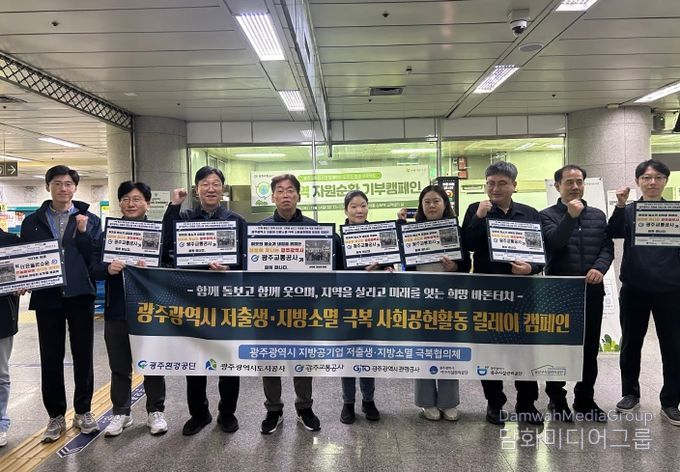 시민행정신문 강갑수 기자 | 광주교통공사(사장 조익문)는 13일 광주시 서구 상무역에서 ‘저출생, 지방 소멸 극복 캠페인’을 펼치고, 최근 사회 주요 이슈 중 하나인 고령화 및 출산율 감소 등 인구 문제에 대한 사회적 공감대 확산에 나섰다.