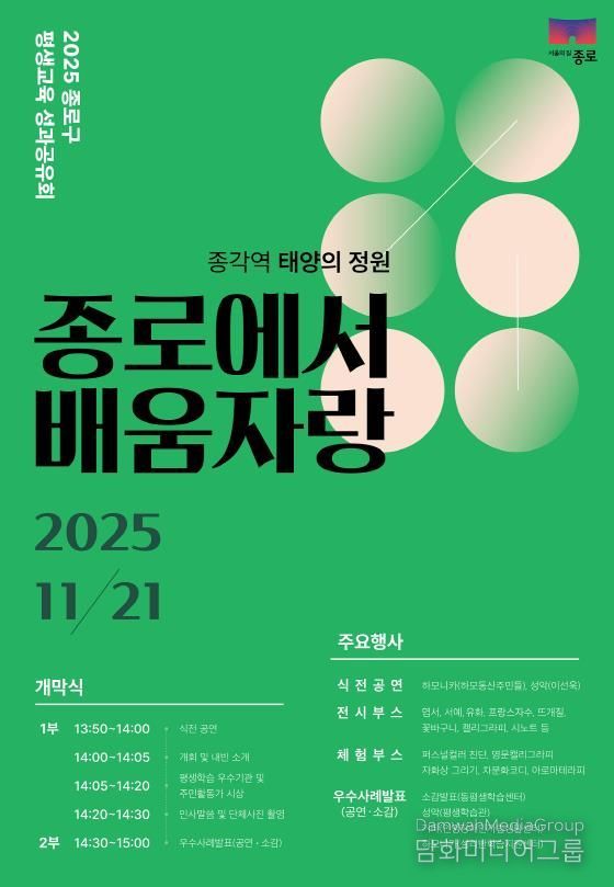 시민행정신문 이존영 기자 | 종로구가 11월 21일 12시부터 16시까지 종각역 태양의 정원에서 '평생교육 성과공유회'를 개최한다.