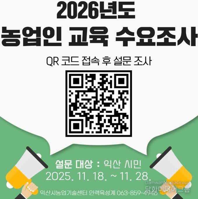 시민행정신문 강갑수 기자 | 익산시가 농업인의 실제 필요를 교육 정책에 반영하기 위해 '2026년도 농업인 교육 수요 조사'를 시작했다.