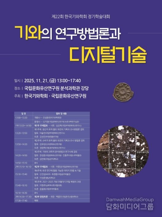 이번 학술대회는 기와의 연구방법론과 디지털 기술의 융합을 통한 최신 연구 성과를 공유하기 위해 마련된 자리로, 고고학, 보존과학, 디지털 기술 분야 전문가들이 참여하여 기존 기와연구의 새로운 관점과 방안을 논의할 예정이다.