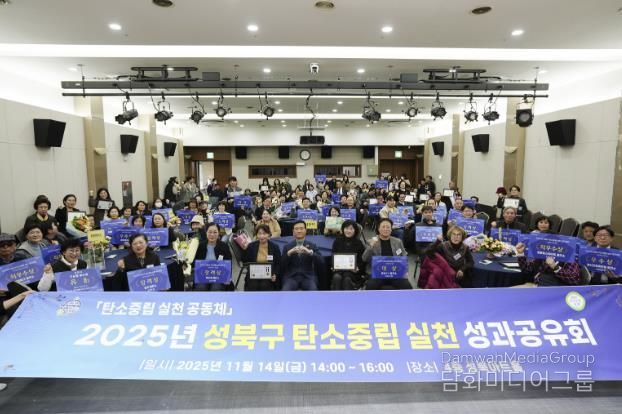 시민행정신문 강갑수 기자 | 서울 성북구가 지난 14일 구청 성북아트홀에서 ‘2025년 성북구 탄소중립 실천 성과공유회’를 성황리에 마쳤다. 이번 행사는 한 해 동안의 성북절전소 활동 성과를 공유하고 우수공동체의 탄소중립 실천 노력을 격려하기 위해 마련됐다.