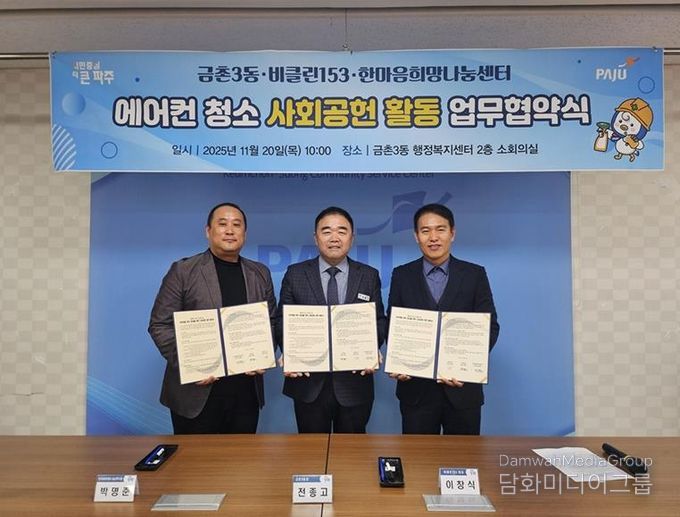 협약에 따라 금촌3동은 대상자 발굴 및 행정적 지원을 담당하며, ‘비클린153’은 전문 장비와 기술을 활용해 생활가전 청소 서비스를 무상으로 제공한다. 또한 ‘한마음희망나눔센터’는 가정용 청소용품 꾸러미를 무상으로 지원할 예정이다.