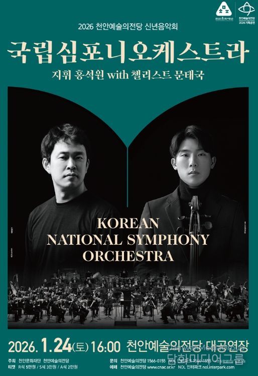 시민행정신문 강갑수 기자 | 천안문화재단은 내년 1월 24일 천안예술의전당 대공연장에서 ‘국립심포니오케스트라 with 지휘 홍석원, 협연 첼리스트 문태국’ 신년 음악회를 개최한다고 밝혔다.