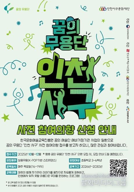 인천서구문화재단 관계자는 “‘꿈의 무용단’은 관내 아동들이 예술을 통해 자신을 발견하고, 협동과 표현의 기쁨을 배우는 소중한 기회가 될 것”이라며, “이번 사전 참여의향 접수를 계기로 더욱 많은 아동들이 무용에 관심을 가지고, 꿈의 무용단에 한 걸음 더 가까워질 수 있기를 기대한다”라고 전했다.