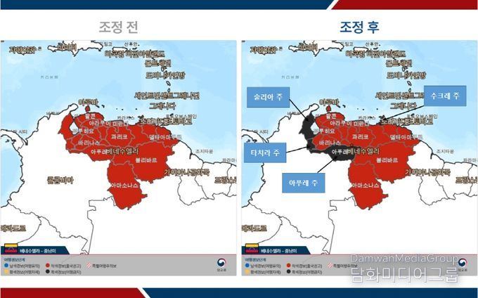 시민행정신문 이존영 기자 | 외교부는 최근 베네수엘라 국내외 정세와 관련하여 우리 국민이 방문‧체류할 경우 신변 안전이 매우 심각하게 우려되는 베네수엘라의 일부 접경 지역에 대해 11월 21일 23:00부로 여행금지(여행경보 4단계)를 발령하기로 결정했습니다.