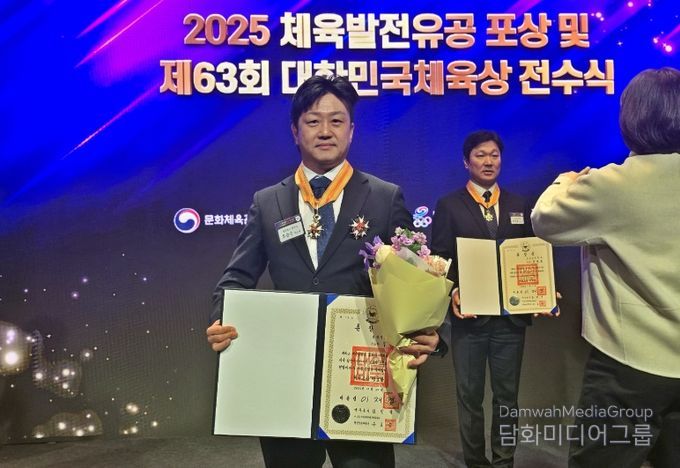 시민행정신문 강갑수 기자 | 경주시청 우슈팀 우승수 감독이 21일 서울에서 열린 ‘2025 체육발전유공 포상 및 제63회 대한민국체육상 전수식’에서 체육훈장 맹호장을 받았다.