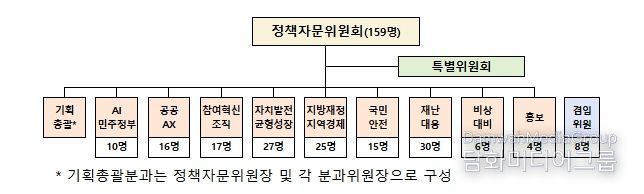 향후 1년(’25.11.24.~’26.11.23.)간 활동하게 되는 제8기 정책자문위원회는 학계·연구원·기업·시민사회 등 다양한 분야의 전문가 159명이 위촉됐으며, 행정안전부 조직개편(’25.11.25. 시행 예정) 내용과 연계해 10개 분과로 구성됐다.