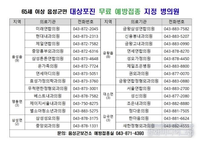 시민행정신문 기자 | 음성군이 대상포진 예방을 위한 ‘65세 이상 대상포진 무료접종 사업’이 시행 3년 차를 맞아 지역사회의 든든한 건강 울타리 역할을 하고 있다.