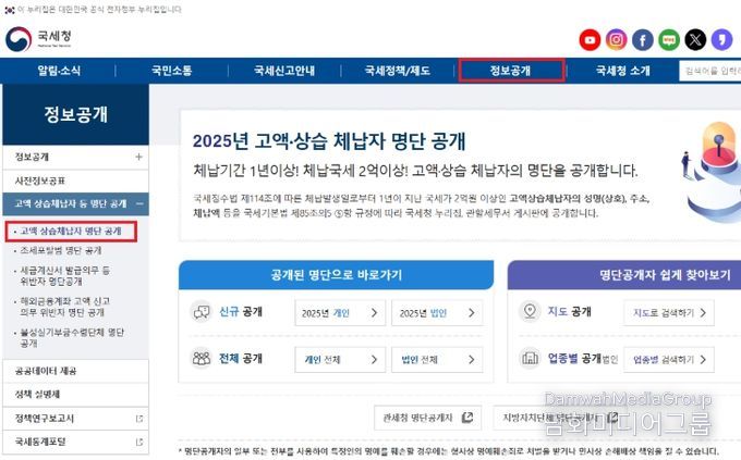 시민행정신문 강갑수 기자 | 국세청은 국세체납액이 2억 원 이상인 고액・상습체납자의 인적사항 등을 국세청 누리집을 통해 공개했다.