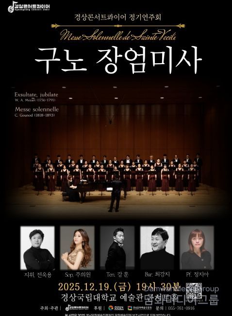 시민행정신문 강갑수 기자 | 경상콘서트콰이어가 송년 음악회 구노 〈장엄미사〉를 12월 19일 오후 7시 30분 경상국립대학교 예술관 콘서트홀에서 개최한다.