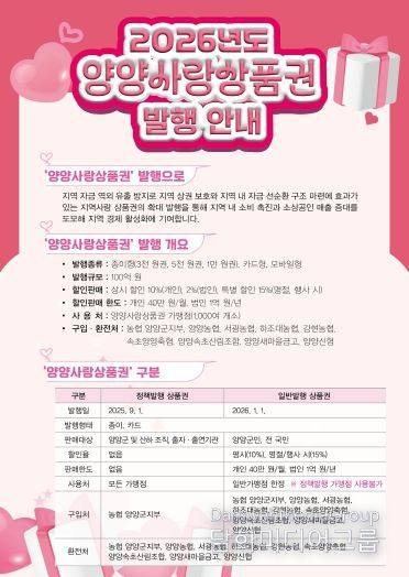 시민행정신문 강갑수 기자 | 양양군은 2026년부터 기존 종이형으로만 발행하던 ‘양양사랑상품권’을 카드형까지 확대 발행해 지역 내 소비 촉진과 자금의 선순환 구조를 한층 강화할 계획이라고 17일 밝혔다.