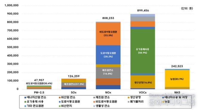 국가미세먼지정보센터는 국가데이터처, 기상청, 산림청 등 국내 150여 개 기관에서 만든 260개 자료를 활용해 배출량을 산정했고, 특히 올해는 기존 산정 방법(ver6.0)에서 유기화학 제품 제조시설, 노천 및 농업잔재물 소각 등에서 배출되는 대기오염물질 산정 방법을 개선해 정확도를 높였다.