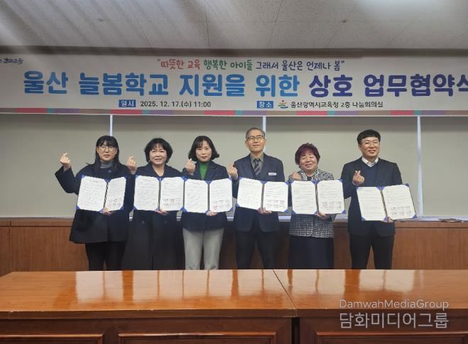 울산교육청은 지난 17일 나눔회의실에서 울산 지역 ‘권역별 시니어클럽’과 늘봄학교의 안전한 운영과 학생 참여 지원을 내용으로 하는 업무협약을 했다.