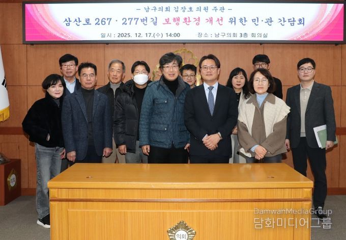 시민행정신문 기자 | 울산 남구의회 김장호 의원(국민의힘, 삼산동·야음장생포동)은 17일 3층 의회 상황실에서 삼산로 267·277번길 건물주협의회, 관계부서 공무원 등 15명이 참석한 가운데 보행환경 개선 및 K-뷰티 특화거리 조성 관련 간담회를 개최했다.