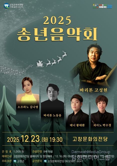 시민행정신문 강갑수 기자 | 고창군이 오는 23일 저녁 7시30분 고창문화의전당에서 ‘2025년 송년음악회’를 연다.