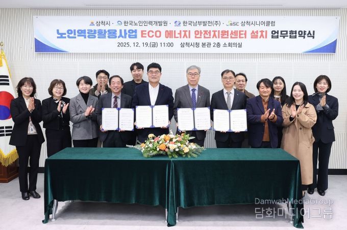 시민행정신문 기자 | 삼척시는 12월 19일 한국노인인력개발원, 한국남부발전(주) 삼척빛드림본부, 삼척시니어클럽과 함께 신규 어르신 일자리 창출사업으로 ‘Eco에너지 안전지원센터’ 운영을 위한 업무협약을 체결했다.